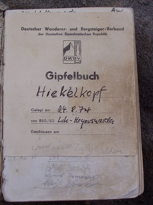 Originální věžka je trošku stranou od cesty i od zájmu lezců, o čem svědčí ne zcela popsaná vrcholová knížka z roku 1974!