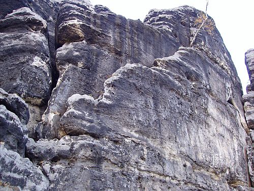 Je tu i pár dalších pěkných a netěžkých cest, ale bohužel jejich obtížnost je skryta právě v jejich lámavosti a křehkosti! Typickým příkladem je cesta Sonnenwand VIIb na Kleiner Edelweissturm. Vážně krásné šestkové lezení z roku 1978, ale díky lámavosti je to VIIb, neboť ne všemu lze věřit a tak velké chyty vynecháváme a bereme již olámané hnidy a poličky, nohama se vyhýbáme dobrým stupům a tlapeme raději vedle na tření a ejhle, z pohodové šestky je náhle zajímavé VIIb. Ale dva kruhy dodají jistoty i v kamenolomu a tak hvězdička i vaše přelezení jsou na místě.