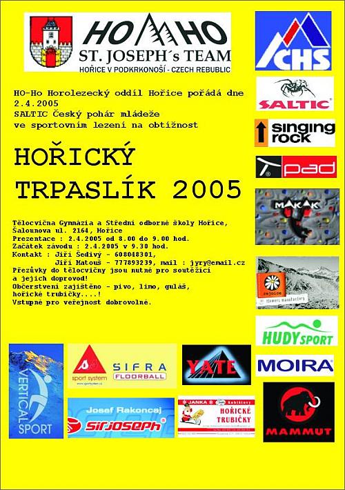 pořádá dne 2.4.2005 - SALTIC Český pohár mládeže ve sportovním lezení na obtížnost