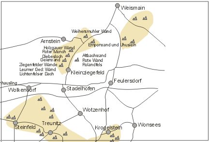 Do severní části Frankenjury je lepší jezdit přes Bayreuth. Kus za ním najedete na dálnici směrem na Bamberg. Z dálnice sjedete na Stadelhofen, který minete a pokračujete na Weismainn. Brzy vás v Kleinziegenfeldu přivítají první skály. Sice se na ně neleze, ale na jedné z nich stojí cyklista s vlajkou. Vypadá tak autenticky, že si ho lze splést se sebevrahem.