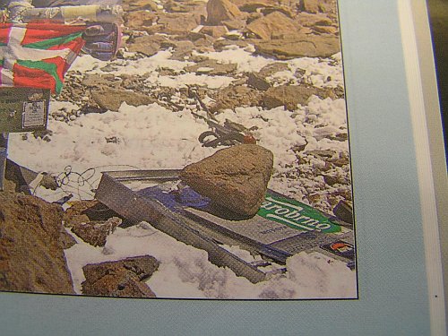 Zajímavá je vrcholová fotografie jednoho z účastníků, na které hrdě ukazuje baskickou vlajku. Povšiměte si prosím detailu v pravém dolním rohu:-) Snad mi bojovníci proti skryté reklamě na netu pro tentokrát prominou. Nemohl jsem si pomoci :-)) Víte kdo z našinců tam takhle škodil?