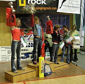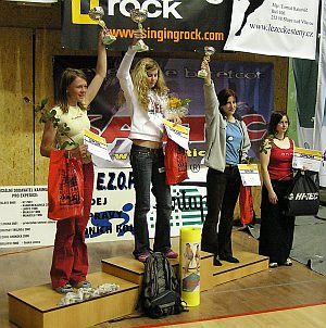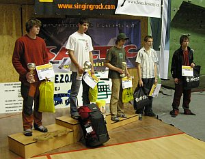 Jako jediní udrželi topové chyty na 14 metrů vysoké stěně:  Jan Janoušek (B), Adam Ondra (C), Martin Stráník (D) a jediná dívka Anička Wágnerová (A). Ostatní svůj boj se záludnostmi cesty a gravitací vzdali o nějaký ten metr ( v případě Rádi Šifry o centimetry) níže. Zejména výkony Adama a Martina sledovala celá hala se zatajeným dechem a po zásluze je odměnila bouřlivým potleskem. Vyhlášení výsledků a odměnění nejlepších bylo vyvrcholením  sportovně i organizačně zdařilého mistrovství.