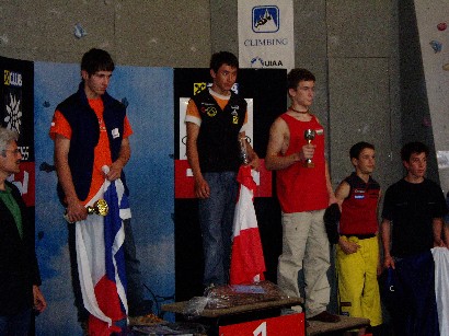 Po dvou kvalifikačních kolech (kde se mimochodem stavěčům moc nepodařilo odhadnout výkonnost závodníků a např. v kat. A děvčat a v juniorech postupovalo do finále 12 závodníků s oběma TOPY) do finále postoupili 4 naši závodníci. Martin Stráník dal společně s Davidem Lamou - Rakousko a Kamvásem Bálintem - Maďarsko ve finále TOP a tak rozhodlo o umístění až superfinále, které lezli na finálovce chlapců -A a juniorů. David Lama jako jediný ze všech opět topoval, Martin lezl výborně a mezi juniory by patřil k nejlepším, ale na Lamu to tentokrát bohužel nestačilo, takže gratulace k 2. místu. Silva Rajfová tentokrát obsadila "pouze" 5.-7. místo, ale o vyrovnanosti závodnic v její kategorii-A, svědčí fakt, že ve finále byl rozdíl mezi prvním a sedmým místem pouze v dosaženém teči. Terka Čermáková zabojovala a dolezla si ve své kategorii-B pro krásné 5.místo a potvrdila svou zlepšující se výkonnost. Honza Zbranek obsadil v kat. juniorů 8.-9. místo a doufejme,že si stěnu ohmatal natolik, aby se příští týden na