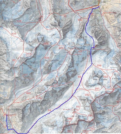 Naše varianta byla trošku jiná, než je obvyklé. Rozhodli jsme se nejprve zdolat druhou část cesty mezi Bourg St. Pierre a Zermattem a teprve potom zaútočit na začátek cesty v Chamonix, který jsme chtěli zpestřit výstupem na nejvyšší alpskou horu Mont Blanc.
