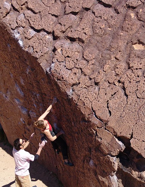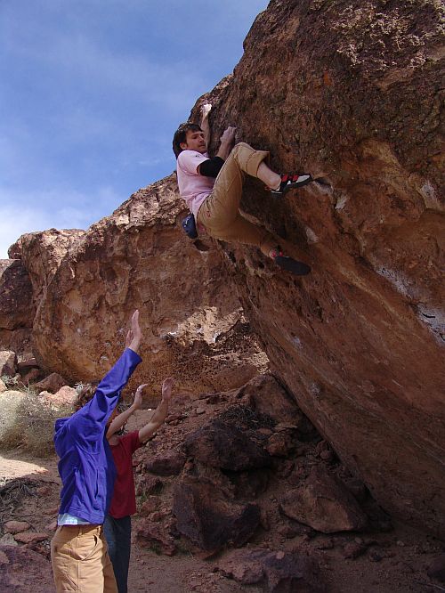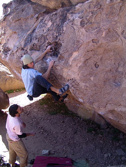 Andy drtí jednu z místních klasik 7A+ Sad Boulders