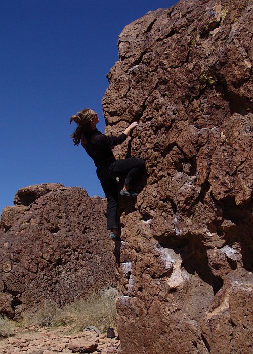 Velmi známý boulder leze Alison v oblasti Happy Boulders