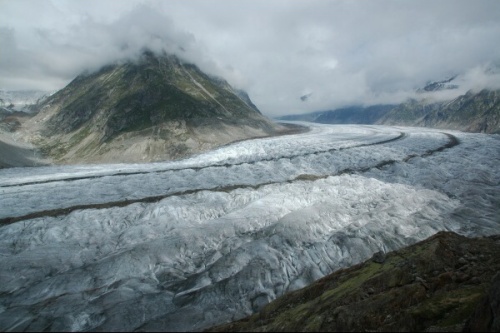 V sobotu ráno jsme po celonočním přejezdu dorazili do městečka Fiesch, kde jsme se sešli s posádkou druhého auta a lanovkou vyjeli cca o 1000 metrů výš do Bettmeralpu. Odtamtud už nás čekalo jen pěší šlapání. Nejprve nahoru, přes kopec. To co jsme viděli bylo úchvatné. Grosser Aletschgletscher je opravdu úžasný kus ledu.
