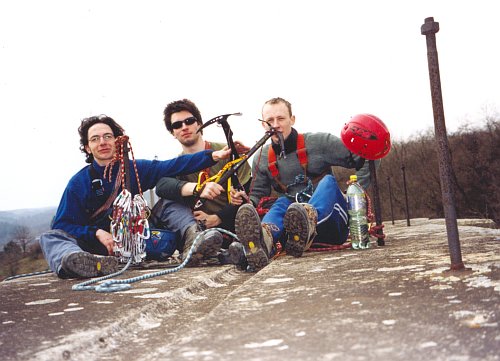 Je zima. Naše volné (nejen) horolezecké sdružení zvané FMB se začínalo pomalu nudit. Moc práce, málo času, ještě méně peněz a žádná nízkorozpočtová akce ve výhledu. Když tu hle přichází Jura se svojí vizí. Chce opět zdolat pilíř u príglu. Říkáme: "To už tu bylo. A je to tu zas?" Ovšem proč ne, podmínky (a tudíž celá akce) budou diametrálně odlišné. Sešli jsme se po osmé před pilířem (Já a Jura). Počasí pro náš účel ideální - tma, teplota pod nulou, sněží. Jura přijel na kole, což bylo stejně bláznivé, jako celá tahle akce. Tož navázat, zbraně do pracek, tfuj tfuj a jde se na věc. Následuje obdoba předchozí akce za "normálních" podmínek až na tyto změny: bylo to utrpení, začátek lezení 21:00, častější odsedy, první délka Já druhá Jura, při dobírání Jury do vinglu jsem málem usnul (únavou - Jura lezl celkem rychle), při jištění Jury v druhé délce jsem vymrzl jak sobolí hovno (Jura už tak rychle nelezl), v průběhu noci dorazí Vašek, který nahoru vyžůmaruje, přes kladku taháme bágly, nahoru do vzduchu vytáhnem i kolo: ochrana před místními zlodějskými gangy, konec lezení 3 ráno, a ještě jednou je třeba zdůraznit - bylo to utrpení. Následují už samá pozitiva a sociální jistoty: ubytování v jedné z dvou ďur nahoře (akorát pro tři ležící lidi), vaření supr žrádýlka, venku už -8oC, ale to nám ve spacácích nevadí. Ráno sluníčko, snídaně, spuštění batohů a kola, slanění. Takové "zimní lezení" (vlastně proč " ") v laboratorních podmínkách. Pro lidi co hledají pohodu v nepohodě. Většina (z nás nenormálních) asi chápe?