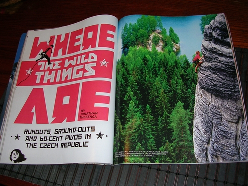 Tedˇ je to náš třetí den v Adršpachu a odešli jsme s Miroslavem a Tomášem na odpoledne do krásného shluku třicetimetrových věží. Ještě jsme s nimi nelezli a jsme nedočkaví, až uvidíme tyhle chladnokrevné šelmy lézt v českém stylu. Počítáme, že nás jdou provést nějakou příjemnou položenou plotnou za 5.8 (pozn. překl. – 5+/6- UIAA) nebo něčím podobným.