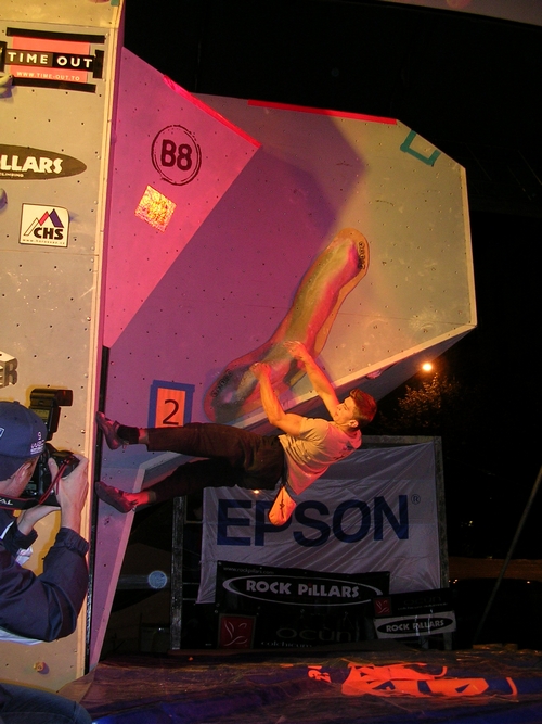 smTomasz Oleksy z Polska zvítězil dnes v mezinárodním mistrovství České republiky v boulderingu, které se konalo v Praze na Václaváku. Druhý z mužů a mistr republiky byl Martin Fojtík, 3.  Jan Zbranek,
