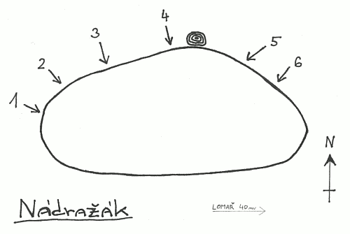 První objevený kámen této oblasti, viditelný už z vlaku. Je skoro jisté, že se na něj lezlo už dříve, ale do dnešní doby se tu žádné stopy po lezení nedochovali.