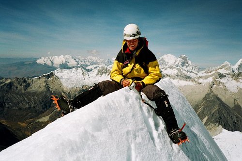 V údolí Ishinka nejvíce upoutala naši pozornost pěkná pyramida hory Tocllaraju (6030m) a následující odpoledne jsme si už lebedili ve stanu v C1 (5300m) na okraji ledovce pod kopcem. Pro výstup jsme si s Ondrou vybrali asi 500m vysokou západní stěnu. Vstali jsme o půlnoci a ve tři jsme dorazili pod okrajovkou. Následovala parádní, letos hlavně ledová, stěna s konstantním sklonem okolo 60st. Poslední tři délky jsme bojovali s tříštivým bublinkovým ledem. Tudy bych určitě sestupovat nechtěl. Zbývala nám jen cesta nahoru. Alespoň jsme nemuseli tak často vrtat šrouby, což byla před tím v tvrdém ledu určitě největší dřina. Po osmi hodinách lezení (od paty stěny) jsme se šťastní dopotáceli na vrchol. Nahoře jsme se velmi unaveni zaradovali z první šestitisícovky a vzhůru dolů. Sestup po severozápadním hřebenu byl poměrně snadný a tak jsme se mohli při častých přestávkách kochat naší stěnou, kterou jsme měli jako na dlani. V táboře nám Klapča navařila z našich skromných zásob a ještě večer jsme stihli sejít až do BC.