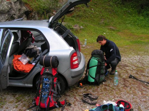 Paní chatařka nám vaří pekelně velkej hrnek čaje a po krátkém odpočinku svištíme dolů do údolí, protože počasí se kazí hodně rychle -- na přechod není pomyšlení. Se setměním jsme zpátky u auta pekelně vyčerpaní, ale spokojení, že lekci od kopce jsme si vzali k srdci.