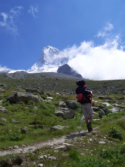Naším prvním cílem je Dent Blanche - bílý zub 4356metrů nad moře se tyčící. Původně máme v plánu uskutečnit následný přechod do Val d´Aosta a nazpět, ale vzhledem k nepřízni počasí a našemu celkově pochybnému rozpoložení zůstane jen u plánu, ale o tom později. Po vydatné snídani a spakování potřebného vybavení opouštíme okolo desáté ráno údolí a strmými pěšinkami stoupáme pomalu k alpskému hotelu Bricola (2415m.n.m.), který se jak Drákulův hrad tyčí vysoko v alpských lukách.