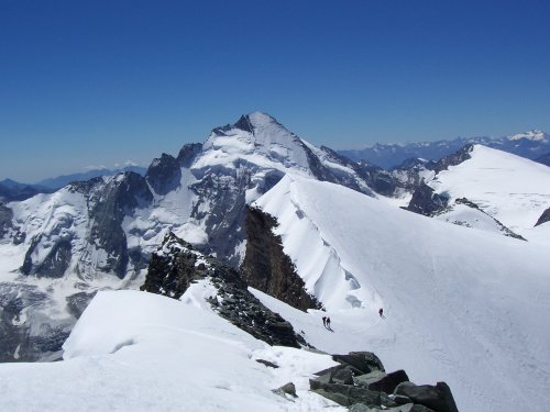 Dent d´Herrens při sestupu z Dent Blanche