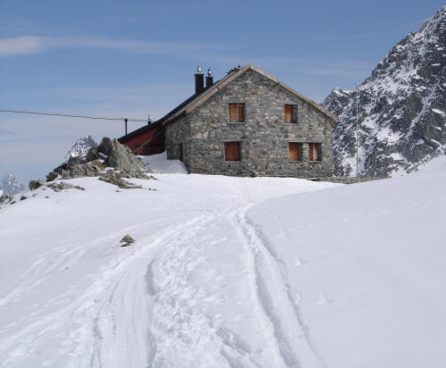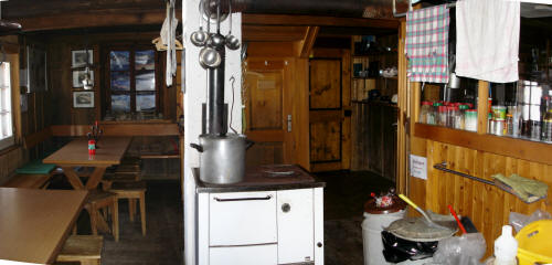 Před chalupou je živo, hrneme se dovnitř, abychom si zabrali volné postele, volání kohosi z chaty nejprve ignorujeme - chalupa je přeci v tuto dobu bez správce. K našemu překvapení, to tak není a chatař nás přibíjí otázkou, zda máme zamluvená místa, neb chata je úplně plná. Chvíli se mu snažíme vysvětlit, že ve dvou švýcarských! průvodcích je chalupa uváděna coby nehlídaná. Odpověď je - "Ven, do údolí". Lenka rudne, představa šesti set výškových metrů na sedlo ji rozehřívá (přímo dolů se nedá kvůli skalnímu prahu), snaží se správci vysvětlit, že máme zamluveny další noclehy na trase - odpověď je tatáž, snažíme si vyloudit nocleh v jídelně - "Tam spí pes" odsekne chatař. Lenka zbledne vzteky a slzy se valí proudem, rozhodujeme se vycouvat z chaty a přespat třeba i na zápraží. Venku panuje jaro, slunce pálí a mi se zaléváme čajem a nabíráme teplo na noc od rozpáleného kamení. Oba ponořeni do sebe s otázkou, jak toto všechno skončí. Slunce opisuje svou dráhu na západ a přibývá chladu. Ostatní se stahují do chalupy, kameny chladnou, správce několikrát projde okolo beze slova - není, nejsme. V pět hodin přijde, bez návaznosti na předešlý vzpěněný rozhovor, s úsměvem oznámí, že dva až tři lidé se zatím nedostavili a že pravděpodobně budou dvě místa pro nás. Slunce zapadlo, chlad se rozhostil a teplo zažhne až správcova odpověď, že místa definitivně jsou. Večeře zahladí předešlou anabázi, připravíme vše na další den a spát.