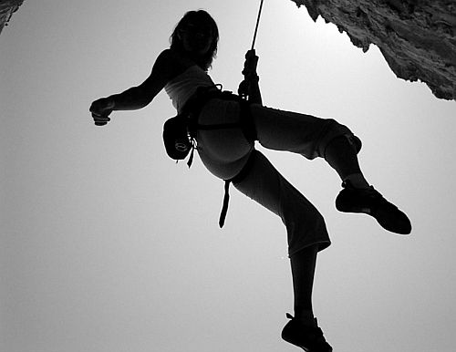 Další ráno jsem se probudila pevně odhodlaná nedat se nikým a ničím vyvést z míry a pokud možno zabránit tomu, aby Tomáš vyprávěl, jak jsem nenašla vchod do stanu, každému na potkání. Našli jsem si pěkné místečko, kde jsem sice nebyli úplně sami, ale hlavně tam nebyla Jitka ani děti. Zrovna jsem vylezla svou první opravdovskou pětku, když vidím, jak k Tomášovi přiběhl Míra, něco si domlouvají a Tomáš na mě volá: „Hele, tak to slaň, já jen odjistím Míru, hned jsem zpátky.“ A zmizel. Oproti svému rannímu předsevzetí jsem začínala být lehce vyvedená z míry. Kdo by se divil, když jsem v životě neslaňovala. Tak si tak nahoře sedím a dělám, že nic. Hlavně se tvářím, že umím slaňovat. A v duchu připravuju Tomášovi dlouhou, bolestnou smrt.