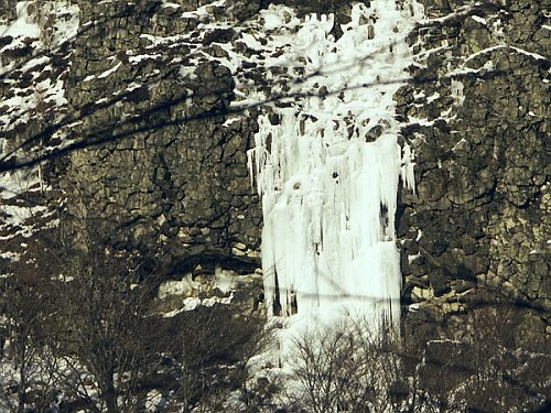Ono s tím rybařením na ledu to není taky tak průzračný, jako ten samotný led. Na Břidličném vrchu (Pusťák je naproti) je všehovšudy jedna, maximálně dvě cesty, keré lze rozumně jistit šroubama. Kdyby narostlo více ledu bylo by to lepší, ale to nenaroste, poněvadž to na tom kousku fšichni hned vobouchají. Ano lze argumentovat, že i blbě zajistitelná cesta po glazurce se dá lézt odspoda, pokud člověk umí, ale to je v situaci kdy se na 10m stěny ohánějí cepínama a mačkama čtyři dvojky opravdu o život. Nedej bože aby někdo začal v takové tlačenici padat na prvním. Problém nebyl, když tam před pár lety jezdilo jen pár místních, ale teď ...