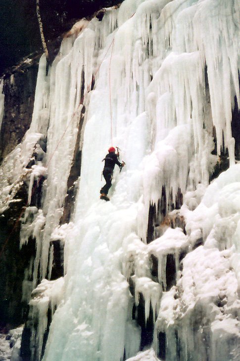 A s tím Kleisem to je něco podobnýho. Když si prošacuješ českej web, tak zjistíš, že se i ty ledy lezou u nás téměř jenom s "gorna asekurácja" - nechci bejt tedy indiskrétní, ale tuším (snad se nemýlím), že to byl právě jeden exotickej pěvec, kterej byl na fotkách z Pusťáku takhle zblejsklej. A ten Kleis opravdu nebude pro každý vořezávátko, který jako vrcholnej sportovní výkon dorazí do Štolpichu, nahází si lano odshora, potom si ty scény ze srazuu rybářů nafotí a vystaví je na webu.