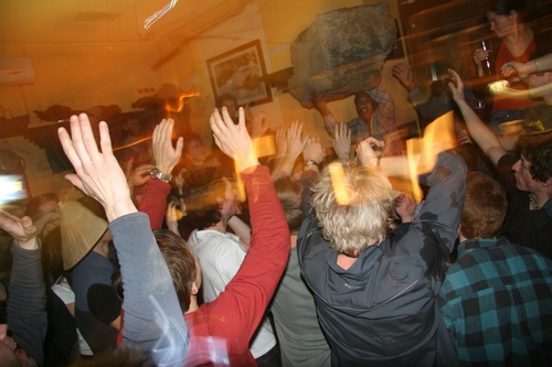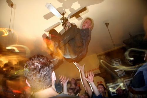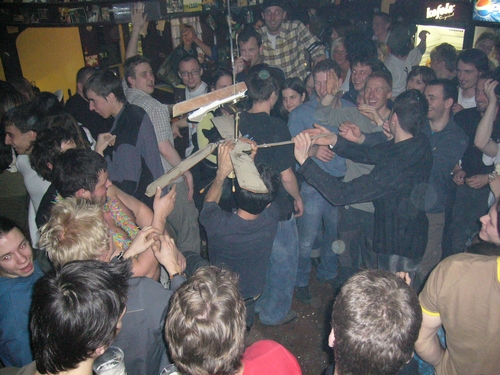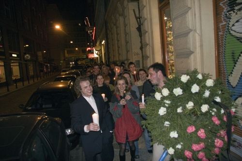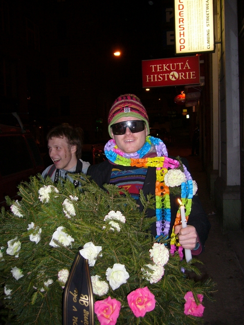 Akce začala smutečním průvodem Prahou, následována hromadným fotem a totální destrukcí našeho hostince (viz fota:)))