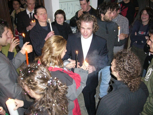 Všichni jsme se sešli v pátečních večerních hodinách, oblečeni ve slušivých smokingách a svíčkou.