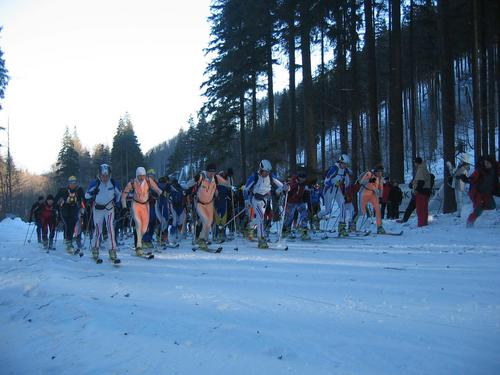 Startovalo se úderem desáté hodiny u dolní stanice lanové dráhy v Ráztoce. Trasa pokračovala  po cestě ke staré lanovce a dále nahoru k chatě Slalomák. Kolem chaty na sjezdovku a po zmrzlém podkladu na hřeben k soše Radegast, kde se sundávaly pásy. Od sochy se sjíždělo po žluté turistické značce k hotelu Skalíkova louka a kolem něj dál až do údolí k potoku. V místě zvaném V Huti se přebíhala cesta vedoucí z Prostřední Bečvy na Pustevny a dlouhým táhlým stoupáním se na pásech pokračovalo na vrchol Čertův mlýn. Zde se odělovala trasa C pro juniory a kadety, a trasa pro hlavní a Open kategorie  vedla dolů do Kněhyňského sedla , pak traverzem po červené do místa zvaného Folvarek. Odtud se systémem lesních cest  sjíždělo do údolí Bystrého až k zelené turistické značce. Následoval třetí výstup na pásech na rozcestí Na Zmrzlém , kde se opět střetly všechny tři trasy. Trasa juniorů a kadetů vedla mezitím prudkým sjezdem z Čertova mlýna přímo na rozcestí Na Zmrzlém. Krátkým stoupáním se závodníci dostali na vrchol Tanečnice a následoval sjezd bez pásů přes běžecké trasy na Pustevny. Zde končily nejkratší trasa C, pro juniory a kadety a trasa B, kterou absolvovali účastníci OPEN kategorie. Trasa A, pro hlavní kategorie vedla dál dolů neupraveným technickým sjezdem na tzv. Podsupně kde následoval výstup bez lyží prudkým stoupáním zakončeným jednodélkovým výstupem skalním terénem za použití fixních lan. Po jejich zdolání se závodníci dostali do blízkosti hotelu Skalíkova louka kudy vedl první sjezd. Zde  opět přišli na řadu lyže a pásy a stoupalo se k soše Radegast, proti směru prvního sjezdu. Od sochy se  po krátkém bruslení  sjíždělo po hřebeni do cíle na Pustevnách pod oblouk Rock Point. Na všech důležitých odbočkách i rozdělení tras byl naštěstí vždy někdo z pořadatelů, takže k výraznějšímu bloudění na trase nedocházelo.
