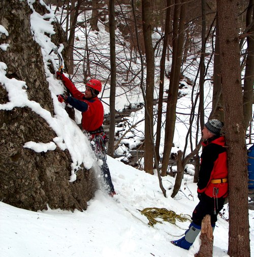 Prezujeme sa a s naloženými batohmi vyrážame pod našu stenu. Ticho ruší vrzgot snehu a vlastný dych. Je zaujímavé počúvať toto duo. Dala by sa podľa toho zložiť raperská pesnička. Batohy ako zvyčajne začínajú prikurovať a tak si dávame prvú krátku prestávku, aby sme si vyzliekli bundy, ktoré nás doteraz hriali. Druhú prestávku si dávame, keď konečne vidíme náš cieľ, ktorý tu stojí hrdo a pyšne ako pred týždňom, keď nám dal košom. V hlave nám víria myšlienky, lebo tie zážitky ktoré sme tu prežívali nám nedali spať celý týždeň a preto sme tu znova. Konečne sme pod našou stenou.