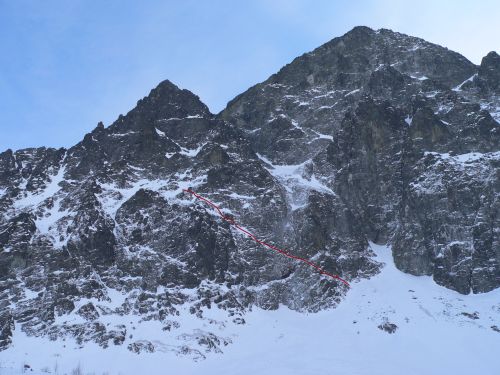 A tak se i stalo. Cesta, která z chaty vypadala lezitelně se s přibližujícími metry stávala pro nás nelezitelnou a tak na řadu přišel náhradní plán. Dvoudélkový led do malé zmrzlé doliny a pak na hřeben a po něm na Čierný štít.