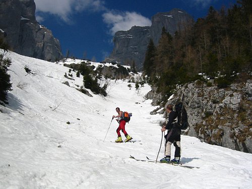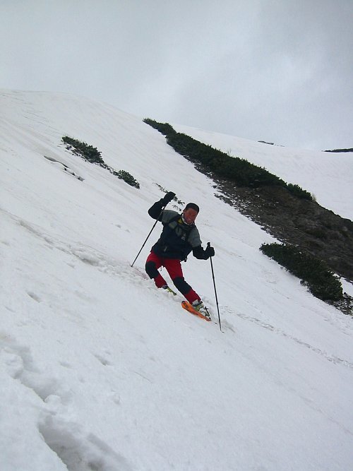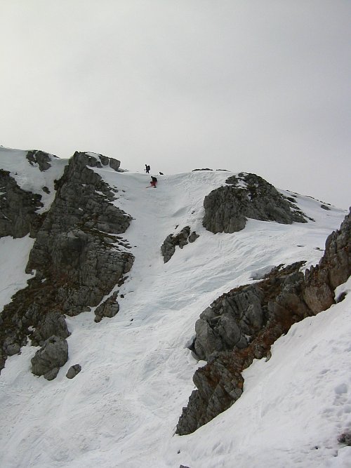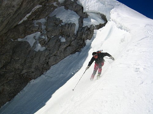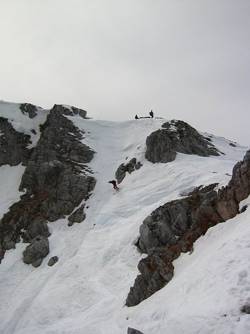 Ustálené chladnější sluneční počasí, příhodná lavinovka a prodlužujícími se dny s nočními mrazíky  jsou příhodné pro levostraný jižní sjezd Zagelkogelu v pohoří Hochswab slabší čtverkové obtížnosti.