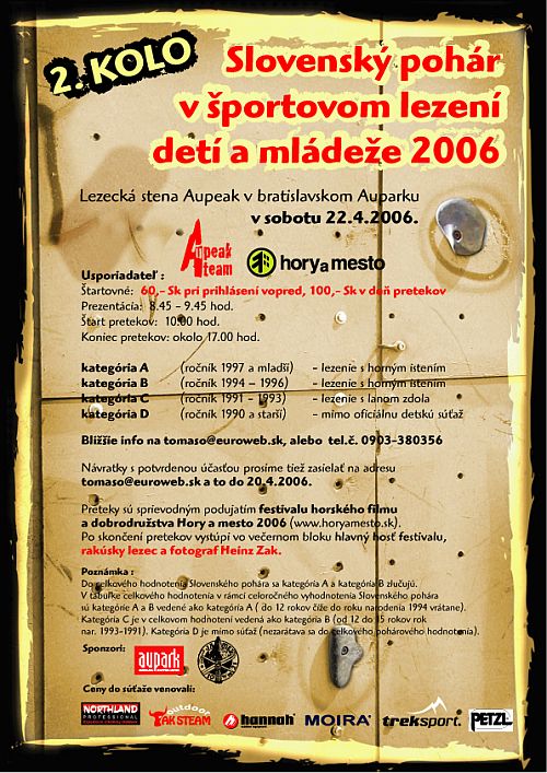 Preteky sú sprievodným podujatím festivalu horského filmu a dobrodružstva Hory a mesto 2006 (www.horyamesto.sk). Po skončení pretekov vystúpi vo večernom bloku hlavný hosť festivalu, rakúsky lezec a fotograf Heinz Zak.