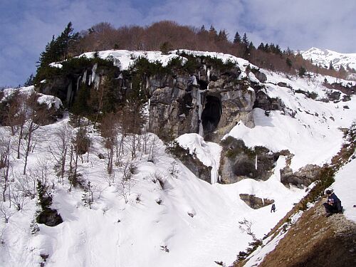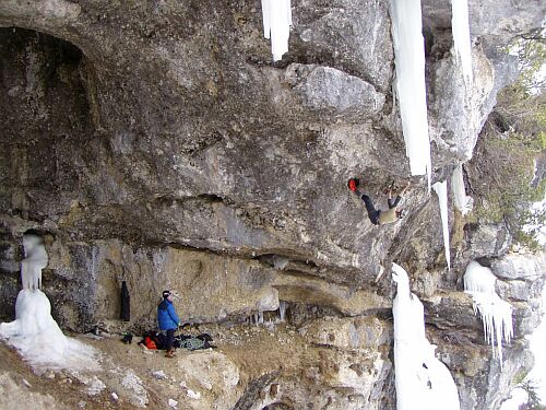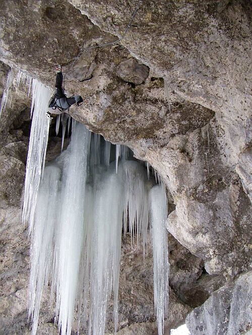 Odtud již „zu Fuss“ do jeskyně s úžasnými rampouchy. 50-ti minutový výšlap vás zahřeje do cest M5 až M13. Převislé cesty jsou dobře zajištěny nýty, dlouhé 10 – 25 metrů. Autorem cest je místní borec Albert Leichtfried.
