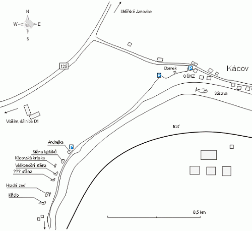 Sešitkový průvodce bude snad vydán Algenou a poměrně dobrý je také ten na Lezci (viz níže). Nákresy jsou podle toho Algenovo a po naší návštěvě jsou mírně upravené. Orientace není obtížná, jen přístup k některým sektorům je dost škrábání se do kopce.
