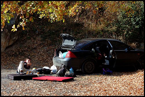 Vzhledem ke stále se zhoršujícímu počasí, vyrazili druhý den Chrobák s Bubákem dále na jih, tentokrát již opravdu po stopách zmíněného průvodce. Cílem byl Branson, boulderingová oblast proslavená zejména bouldery La Danse des Barlogs (první 8B, které kdy spatřilo světlo světa) a Radja, jedno z prvních 8B+.