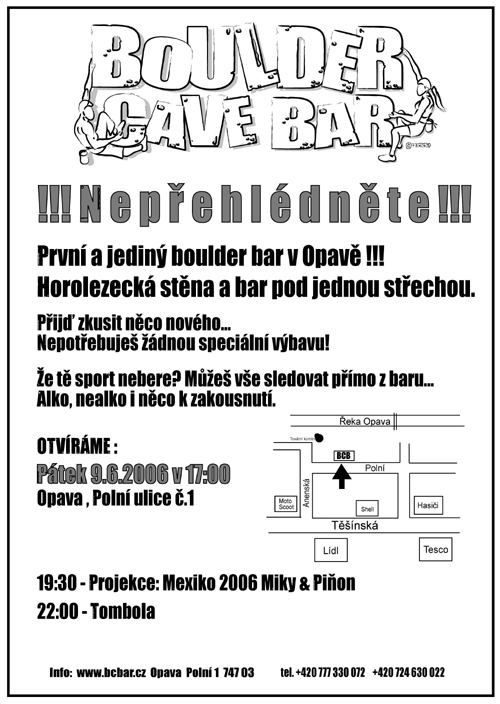 Po dlouhých útrapách a nekonečném vyjednávání s úředním šimlem bude v pátek 9.6. od 17:00 officiálně otevřen nový Boulder Cave Bar v Opavě.