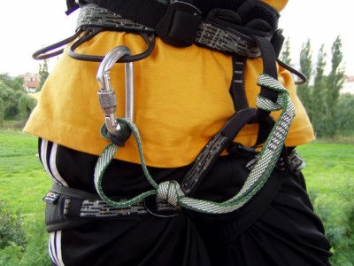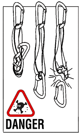 V nedávné době jsem z blízkého okolí zaznamenal dva vážné pády ze skal, které jen velkou náhodou neskončily smrtelně. O jednom případu se zde na lezci již diskutovalo. K pádům došlo kvůli prasklé gumičce, kterou si někteří lezci připevňují (stabilizují) karabinu k odsedávací smyčce. Přestože je toto nebezpečí známé  (například Petzl ho uvádí v návodu na použití gumových botiček obr.) myslím, že neuškodí se na Lezci o tomto nebezpečí zmínit. Pár lidí už gumičku z odsedávky vyhodilo, poté co uviděli potencionální nebezpečí. Vše ostatní je myslím patrné z fotografií a nákresu. Jednoduchým procvaknutím karabiny do oka odsedávky  dojde k tomu, že se karabina ocitne mimo oko smyčky a karabina zůstane viset jen v gumičce!!!