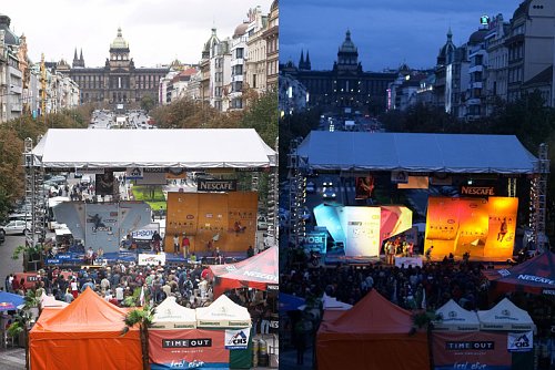 23.9.2006 v dolní části Václavského náměstí. Potřetí v řadě v centru Prahy lezecký kolotoč a jeho napětí...