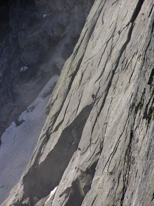 Povedlo se mu tak vylézt touto tisícovkou metrů žulových ploten, jednou z šesti legendárních alpských severních stěn, která se nalézá na hranici mezi Švýcarskem a Itálií a kterou jako první prostoupil v roce 1937 Riccardo Cassin.