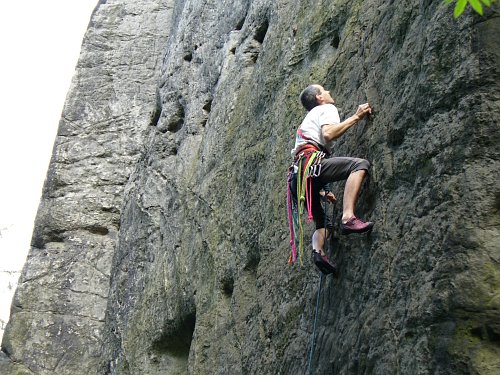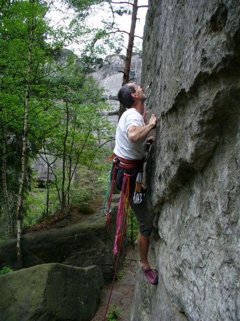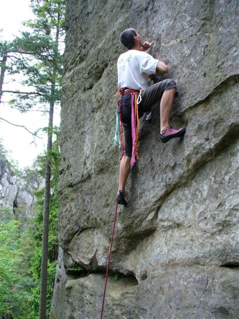 Byli jsme tam jen ve třech a z toho jedna holčina co jistila. Najednou se tiše objevila skupina deseti mladejch fracků ale řvali jako... no víš jak. Vendyš sletěl do lana jak se lek a něco na ně taky německy houknul. Pak jeden sasík nakopnul jistící Moniku do zadku a další vzal ibíčka /v té době za měsíční plat /a hodil je do údolí. Byli v přesile ale dostali na hubu teda my taky. Celý to ukončilo jejich guru, starší chlapík který se zjevil posléze a jen zavelel. Poslouchali ho na slovo. Jinak to celé bylo kvůli maglajzu. Na východ jsme ještě jeli parkrát ve všední dny, pak jsme spíš jezdili do Tisé a pod.