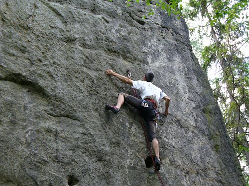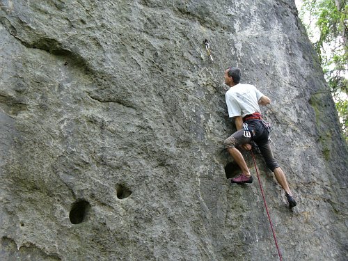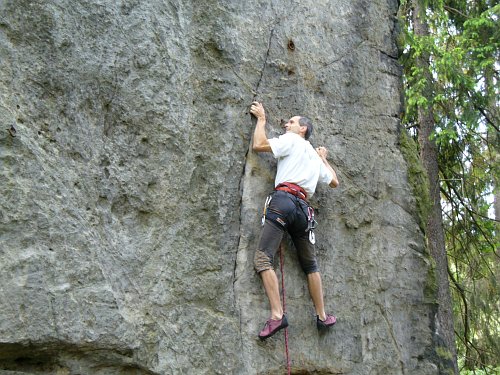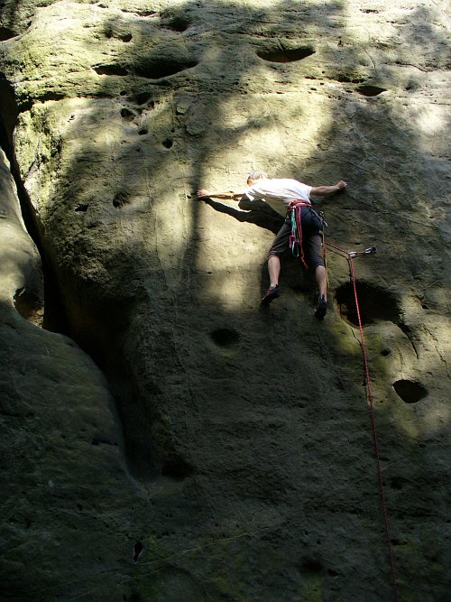Heimatland IXc, RP Xa. Pěkná stěna v levé části SZZ stěny s tvrdým bouldrem od prvního kruhu. Zbytek už jde. Hodí se silný prst.