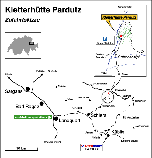 Je to taková zoologická naruby. Člověk spí v ohradě a krávy chodí kolem na exkurze. Ale je to přece jenom zvěř, takže zatímco mi máme v ohrádce pěkně uklizeno, oni mají venku pěkně nasráno. Dále je zde možnost noclehu v Kletterhütte Pardutz kousek nad parkovištěm. Co, jak a za kolik si můžete najít spolu s dalšími informacemi na