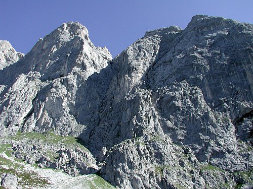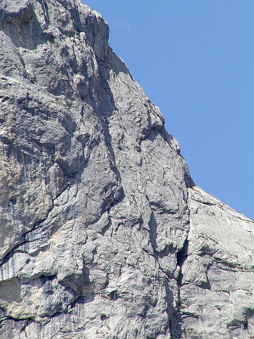 Kam se podíváš samé vápno. Kolikrát zůstává člověku rozum stát, na čem (ničem) se tu dá taky stát, když nic nedržíš.Nějaké oklouzané stupy to tedy fakt nehrozí. Cesty jsou vesměs sanované. Bezpečné štandy a plotny odjištěné nýty, ale jako v Arku to zase není. Často je dobré dojišťovat vlastními jistítky. Je třeba být připraven na delší odlezy a to i v těžkých dýlkách. Počítá se s tím, že když už si nějakou tu obtížnost vyberete, tak na to máte i v hlavě a ne jenom v rukách a nohách. Ještě bych se zmínil o počasí. Jsou to hory, takže je třeba se podle toho řídit. Jarda rád vypráví, jak kdysi lezli s Borisem cestu a divili se, proč dvojky místňáků okolo, slaňují z cest, za celkem pěkného počasí. Lezli dál, až se najednou přes hřeben převalily mraky a teplota během pár minut rázem klesla o dvanáct stupňů, takže z příjemných sedmnácti bylo pět a k tomu vichr a déšť vodorovně. Měli co dělat, aby se vůbec dostali dolů. Takže bacha!