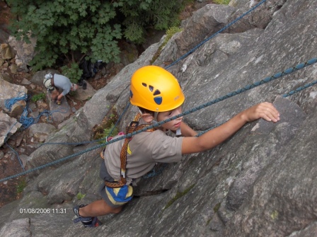Byl to ale lezecký tábor, tak se především lezlo a lezlo a lezlo. Lezecké terény v okolí - Drátník, Čtyři palice, Pasecká skála, Milovské perníčky - se přímo vybízeli k využití dovedností a poznatků, které jsme dětičkám sypali do hlaviček za dlouhých upršených dní i večerů. A ony je přimo ukázkově uplatňovali! Celkově byli dětičky (tedy většinou už tvrdě pubertální mládež) skvělé. Drželi partu, pomáhali si a dokázali skousnout i věci, které jim zrovinka nevoněli. A tím jsem samozřejmě nemyslel kuchyň! Kuchař vařil skvěle!