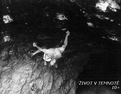 Co dál? Posilněni zážitky z Ospu a ubezpečeni dalšími lezci, že štola je předurčena k umělým cestám, jali jsme se je vytvářet. Nechtěli jsme však shybovačky jako ve Višňovém, navíc nám bylo jasné, že cesty, mají-li být těžké, musí mít tvrdé bouldry. Chyty vznikaly víceméně náhodně a teprve potom se vymýšlely sekvence pohybů. První naprosto umělou cestou byl „Život v temnotě“, který dostal název podle toho, že jsem si neuměl představit, že bychom se někdy ponořili ještě hlouběji do nitra skály. Klasifikaci jsem vyhnal na 10+ a v podstatě se nedá v současnosti říci, zda jí někdo potvrdil nebo snížil. Jediného opakování se dočkala cesta od Zdendy Resche a ten pouze řekl, že je těžší než desítky, které do té doby lezl.