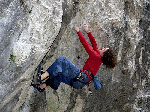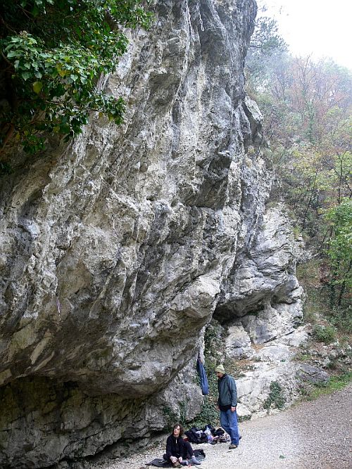 který traverzuje celou jeskyní...... Proto jsme za tímto cílem vyjeli tento víkend a zadařilo se. Celkově na 11 pokus, ale mohlo jich být určitě méně – mrzly prsty. Ještě tentýž den Adam odpytlil cestu Café expresso 8a+ RP (kafíčko na oslavu) a nazítří jsme odjeli do oblasti Vipavska Bela, cca 60 km od Ospu (směr Nová Gorica). Určitě je to zpestření pro ty, co mají v Ospu „méně práce“ a rádi objevují.. Zde Adam onsightnul cestu Cerko 8b a jedno 8a/a+.