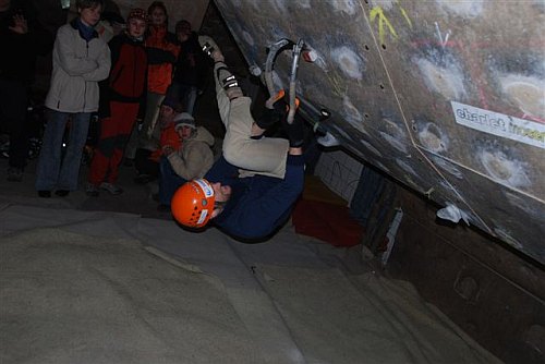 Pretekov sa zúčastnilo 16 mužov a 7 žien. Účasť príjemne prekvapila organizátorov, pretekárov ale aj divákov. Pre pretekárov sme mali pripravených 5 tratí. Dievčatá liezli 4 cesty, chalani mali jeden krátky boulder s lezečkami navyše. Dve trate sme postavili vonku, jednu vnútri a dva cesty sa liezli s lezečkami v bouldrovej časti. Takže tri trate s mačkami a dve z lezečkami. Mužov sme rozdelil na 3 skupiny, dievčatá liezli spolu. Izolačka nebola. Každá cesta mala svoje bodové ohodnotenie. Na konci preteku sme zrátali body. V prípade rovnakého počtu bodov rozhodoval čas.