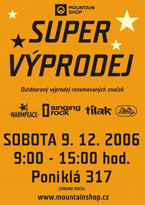 co to plácáš?jaká upotávka na nově otevřenej inter.obchod? Výprodeje v SR už se konaj co ja pamatuju 3roky a i když to poslední dobou trochu slábne,vždycky je tam spousta zboží za super ceny.Nebo takovej sedák od SR kerej norml stojí přes 1000,- za 400,- neni dobrá cena? Myslim,že spousta lezců tuto "odpornou reklamu" přivítala a že tam před otevřením bude zas stát dav jak kdysi na pomeranče.
