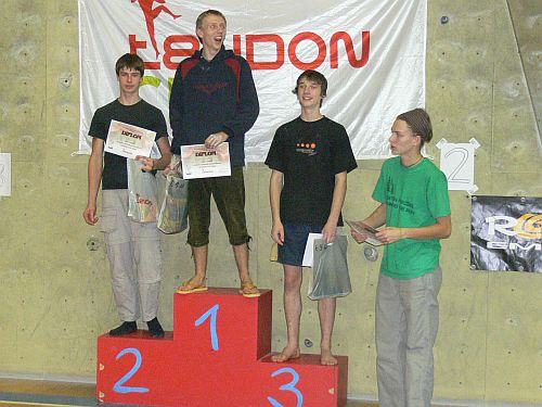 Závěrečné kolo Tendon cupu v Jičíně vložené do první prosincové neděle tedy proběhlo podobně, jako většina závodů. Přes den se všechna dítka potila v našich cestách a my na druhých koncích lan, dělících je od žíněnek, taky. Spoustu umístění vypálili Trutnovské a Jičínské lezecké monopoly, ale ani ostatní děcka se nedaly zahanbit. Prosazuje  se spousta nových jmen, pod nimiž se ale skrývají klučinové a holčiny s vočima navrch hlavy, když daj topku. A neměli by je tam, nebýt série “béčkových“ závodů, kterou nám závidí půl evropy. Tak si jí važme a ji si hýčkejme. Stejně tak, jako naše sponzory, bez nichž by jsme my, pořadatelé, zůstali neunavení a rodiče závodících děcek by měli o starost a výdaje méně, neboť by nebylo na jaké závody jet. Naštěstí je v hloubi duše každého pořadatele pevně zakořeněn onen názor. Ona myšlenka, že „tu měsíční přípravu a ten celodenní maraton přece nedělám kvůli sponzorům ani rodičům, ale kvůli vysmátejm dětskejm očím když sjedou z cesty na zem, nebo když zase konečně potkaj svý kámoše z druhýho konce republiky, nebo když…..“ a za to ta námaha stojí. Všichni závodníci lezli skvěle, dřeli, funěli, křičeli, brečeli, smáli se… Jejich rodičové nechť jsou na ně hrdi. Vřelý dík Tendonu a Hudymu za cenovou podporu, Prachovským skalám za to, že jsou, spoustě lidičkám za pomoc a v neposlední řadě taky rodičům, že nám naše závodníky vůbec přivezli.