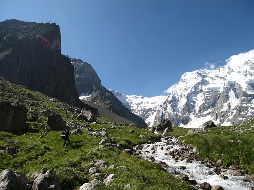 Je vedro, už jsme nastoupali dobrých 1200 m, sedáme pod šutr a jdeme svačit. Fotíme Koshtan, Dychtau, Pavla, Martina, Pavla na šutru, pod kterým svačíme – a teď všem zatrnulo. Ten kámen popojel, hypnotizujíc jej očima, bereme zpod něho naše věci a zatímco nás opouští chuť k jídlu, my opouštíme ono místo. Před námi je ledopád, od pohledu je zatím zdaleka největší, v jakém jsme zatím byli. Už to nás mělo varovat.