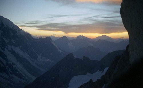 V ledopádu nám Rusové říkali, že je dost teplo a že dnes „děvušku kameny pobily, ostorožno“. Mimochodem za zásah horské by se nemohli stydět ani v Alpách. Rozhodujeme se proto s Tomášem, že za svítání musíme být ve stěně Ptíci, aby na nás taky náhodou něco nespadlo.