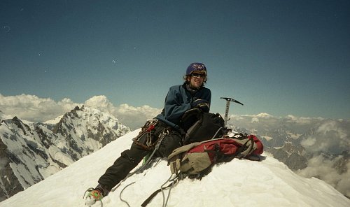 Druhý, ten má být nejtěžší, se nekonal, třetí nás ovšem ve výšce zhruba 4950 svou obtížností pěkně vytrestal. Pak už jen šlapat. „Kdo se nezastaví, ten dojde cíle.“ vzpomínám na Šilhanovu pravdu ve chvílích nejtěžších. A skutečně, najednou už to výš nejde. Vrchol. Radši jsem si hned sednul, aby se mi štěstím nezatočila hlava. A už si třesem rukama a plácáme se po zádech, pašáci . Rozhlížím se  plný pýchy a uspokojení – dokázali jsme to, nic víc nic míň, ale pro nás je to sakra hodně . Dlouho se odplavuje báječná hladina endorfinu. My si náš triumf řádně vychutnáváme. Dáváme čajík, margotku, fotíme.